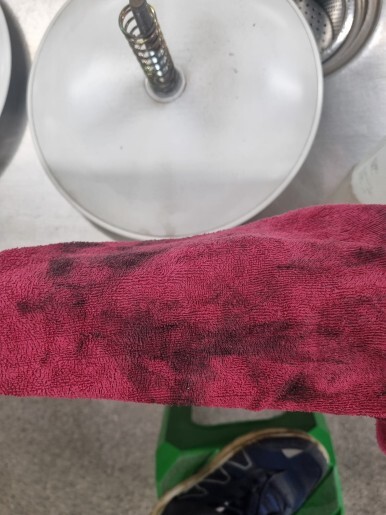 물통에 담가 두었더니 물이 시커멓게 변했다.
