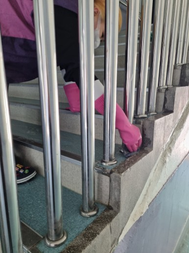 학교 복도와 계단 왁스 작업을
