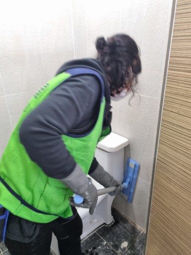 화장실 백시멘트의 가루를 흔적조차 없애자