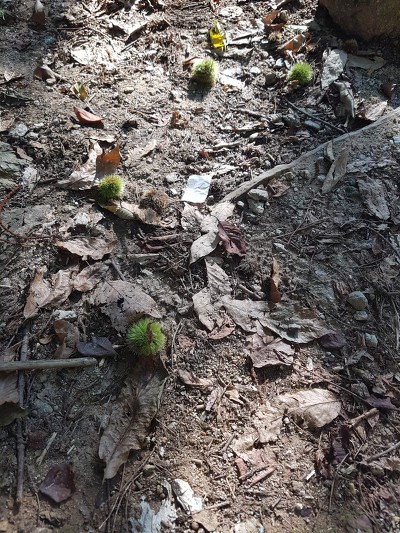 그래서 그런가 산 밤송이가 떨어지기 시작했다. 폭염 때문인지 밤송이가 무척이나 반가웠다.