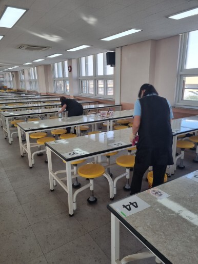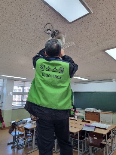 학교 교실 선풍기는 에어컨의 보조 역할을 한다.