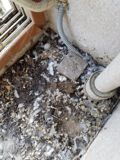 비둘기가 실외기 근처에 둥지를 틀고 서식하고 있었다.